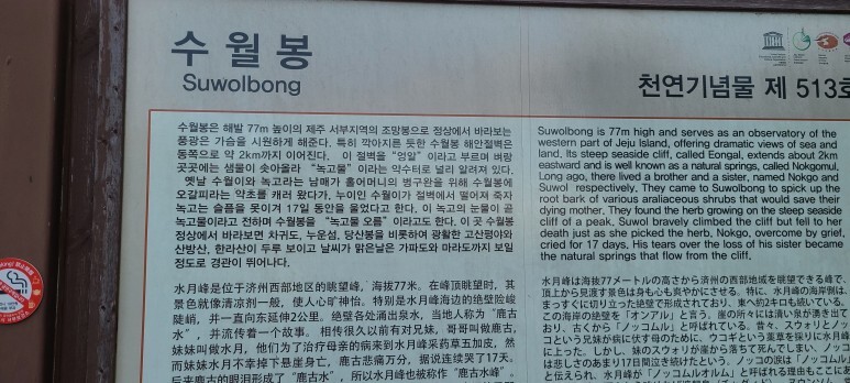 수월봉(水月峰)은 주차장이 정상 부근에 있어 접근하기 좋다.