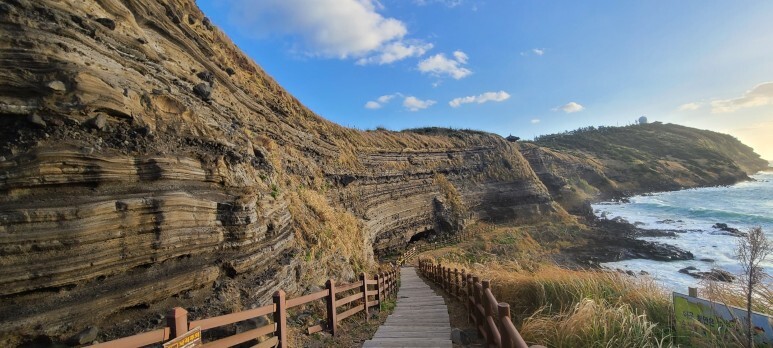 해안 절벽 응회암층은 학술적 가치가 높아 지질학자와 학생들이 자주 찾고 있다.