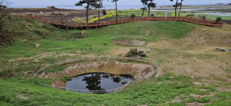일제가 탄약고로 활용했던 알뜨르비행장 부지안에 있는 섯알오름이다. 태평양전쟁 때 미군의 폭격을 받아 함몰되면서 구덩이가 생겨났는데, 제주4.3사건 때 여러 명이 희생된 곳이기도 하다.